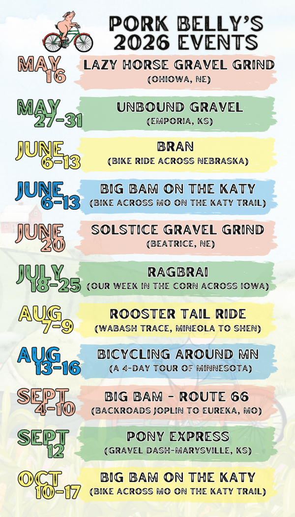 As mentioned in previous emails, all future communications strictly about RAGBRAI LIII with Pork Belly will be sent to our "RAGBRAI 2026" list. If you have registered with us, you will automatically be placed on this list, and we will update the list before sending each email. If you have not yet registered with us, but still want to continue to receive all of the information about RAGBRAI 2026, please sign up for the list using this RAGBRAI 2026 form.