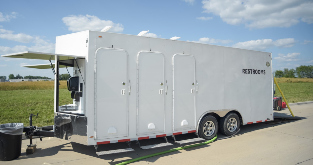 · The Royal Flush, our restroom trailer built by our PBV crew is a more pleasant alternative to the kybos. It offers actual porcelain flushing toilets and urinals, sinks and soap-dispensers, mirrors, ventilation fans, and lighting for your late evening or early-morning trips.